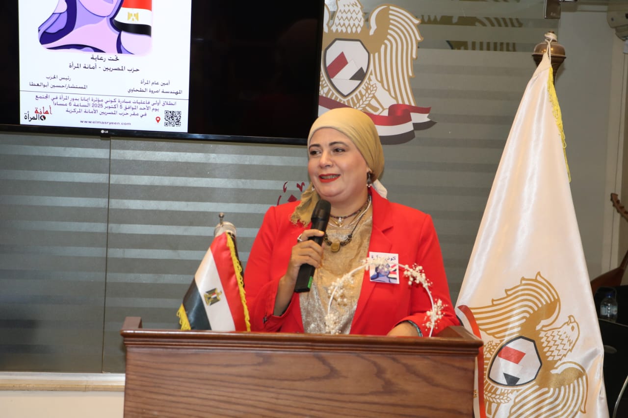 وأوضحت أمينة المرأة بحزب ”المصريين“، خلال كلمتها في الفعالية، أن المبادرة تأتي انطلاقًا من رؤية حزب ”المصريين“ في دعم المرأة وتدريبها وتأهيلها لتكون عنصرًا فاعلًا ومؤثرًا في المجتمع، مشيرة إلى أن المرحلة المقبلة تتطلب وعيًا متزايدًا بدور المرأة في دعم الاستقرار الوطني والمشاركة في الاستحقاقات الدستورية القادمة.