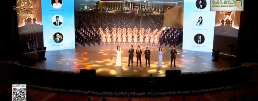 استمع السيد الرئيس عبد الفتاح السيسي، إلي فقرة فنية بمشاركة "كورال وزارة الشباب والرياضة"، ومجموعة من الفنانين، وأدي المطرب محمد عدوية أغنية بعنوان"مصري بطل".