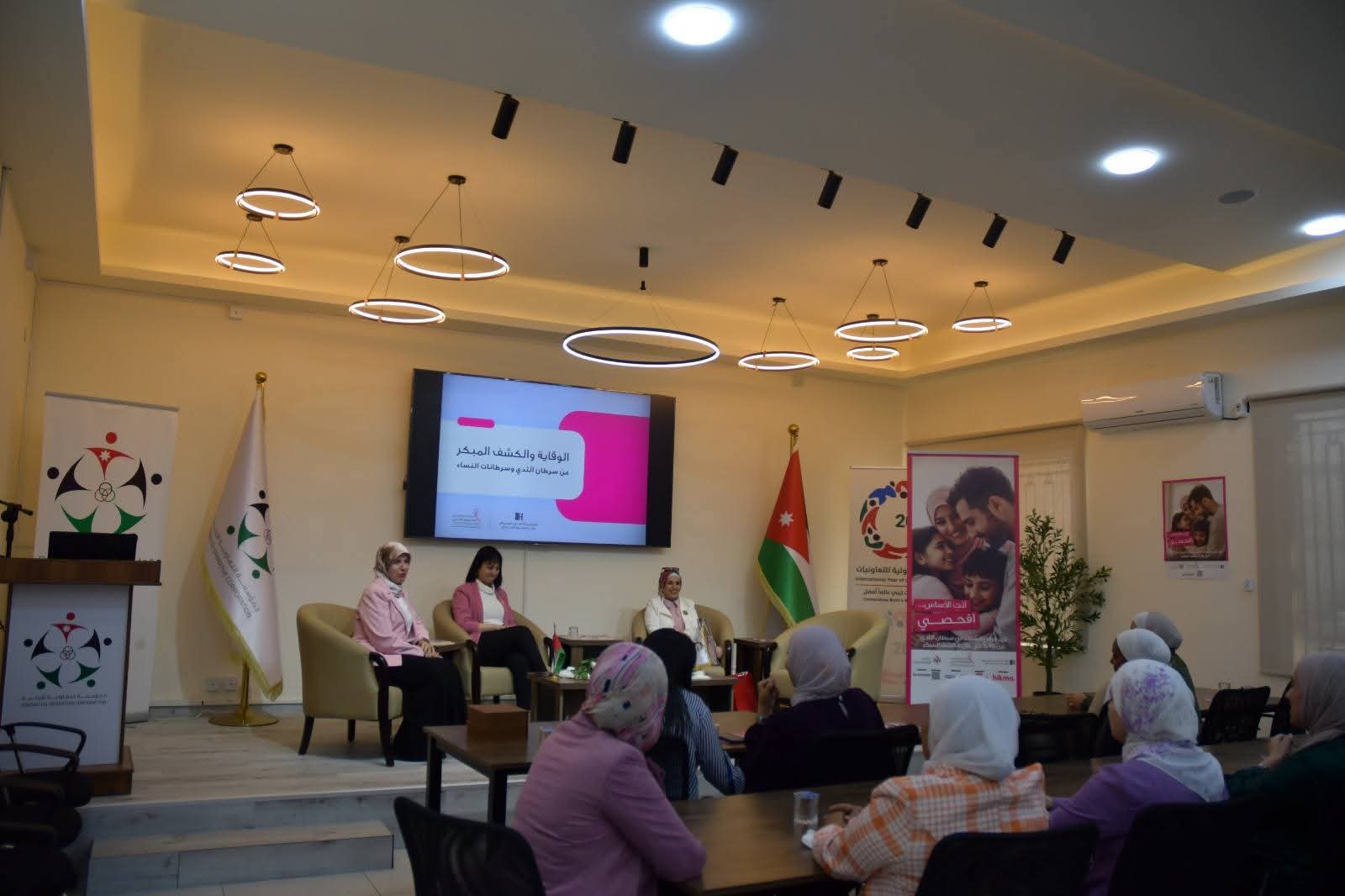 عقدت المؤسسة التعاونية الأردنية، أمس الأحد، ورشة توعوية لعددٍ من الزميلات الموظفات تحت عنوان (الوقاية والكشف المبكر عن سرطان الثدي وسرطانات النساء)، بمناسبة الشهر العالمي للتوعية حول سرطان الثدي، والذي يصادف في تشرين أول/ أكتوبر من كل عامٍ.