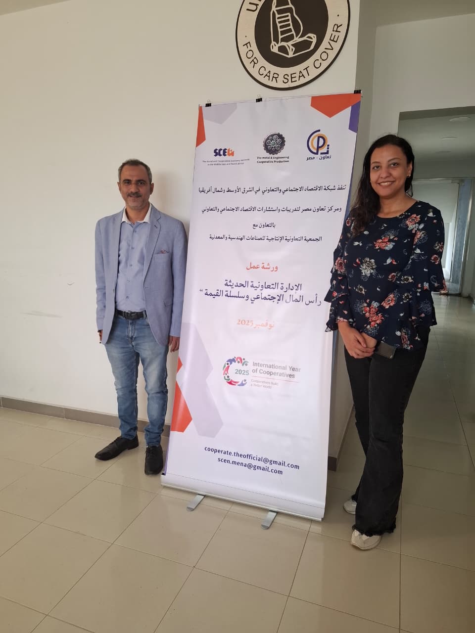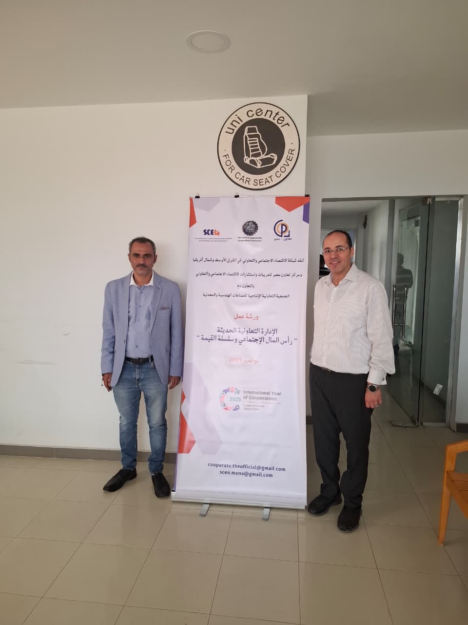 نظمت الجمعية التعاونية الإنتاجية للصناعات الهندسية و المعدنية وبالتعاون مع شبكة الاقتصاد الاجتماعي والتعاوني بالشرق الأوسط وشمال أفريقيا بالتعاون مع مركز تعاون مصر لدراسات الاقتصاد الاجتماعي والتعاوني دورة تدريبية لعدد من القيادات التعاونيه بمدينة بور سعيد حول المنهج الإدارى التعاونى الحديث شملت كيفيه فهم واستخدام مفاهيم رأس المال الاجتماعي وسلاسل القيمة ضمن منظومة الإدارة التعاونيه ويأتى هذا التدريب ضمن برنامج الشبكة لبناء القدرات الفنية للمؤسسات التعاونيه بالمنطقة.