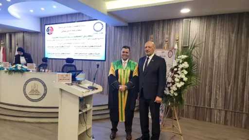 المستشار حسين أبو العطا يهنّئ الباحث فوزي بدوي بحصوله على درجة الماجستير