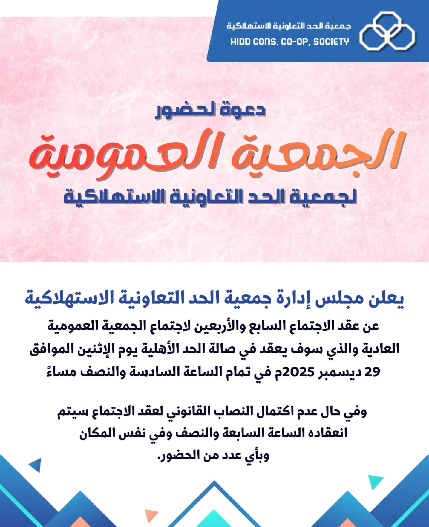 اليوم .. اجتماع عمومية جمعية ”الحد” الاستهلاكية بالبحرين