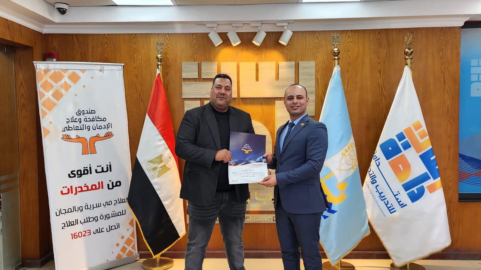 كرم صندوق مكافحة وعلاج الإدمان والتعاطى بكفر الشيخ مصطفى صبرى مدير إدارة الجمعيات بمديرية التضامن الاجتماعى بالمحافظة حيث قام د. سلام العربى - مدير الصندوق بتسليمه شهادة التكريم وذلك بعد انتهاء فعاليات دورة تدريب القيادات التنفيذية بمحافظة كفر الشيخ على طرق وأساليب مكافحة الإدمان وتعاطى المخدرات.