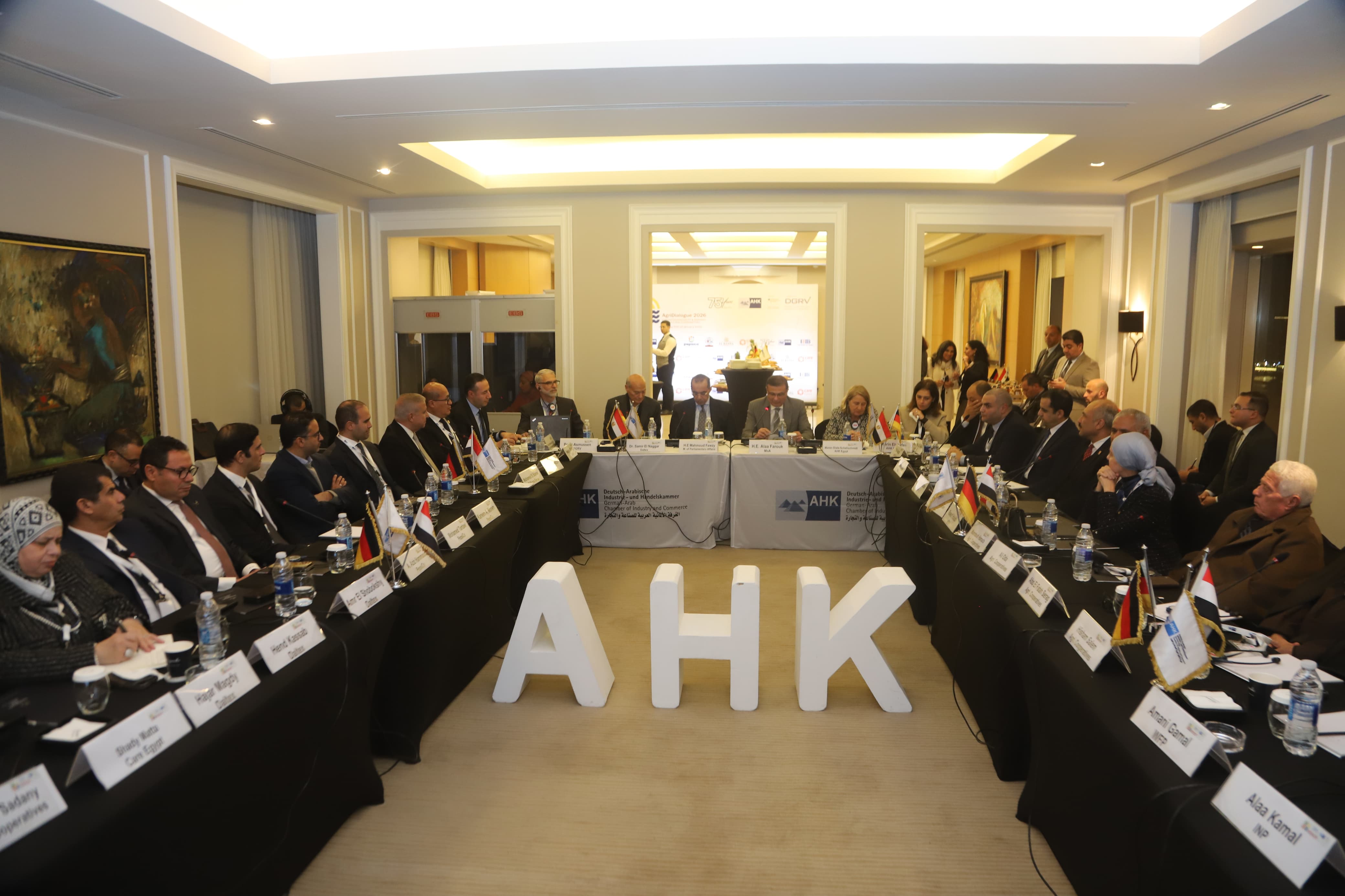 شهد علاء فاروق وزير الزراعة واستصلاح الأراضي، والمستشار محمود فوزي، وزير الشؤون النيابية والقانونية والتواصل السياسي، انطلاق فعاليات الجلسة النقاشية رفيعة المستوى تحت عنوان "الحوار الزراعي 2026: تعزيز التعاونيات الزراعية في مصر وألمانيا"، والتي نظمتها الغرفة الألمانية العربية للصناعة والتجارة بالتعاون مع وزارة الزراعة واستصلاح الأراضي.