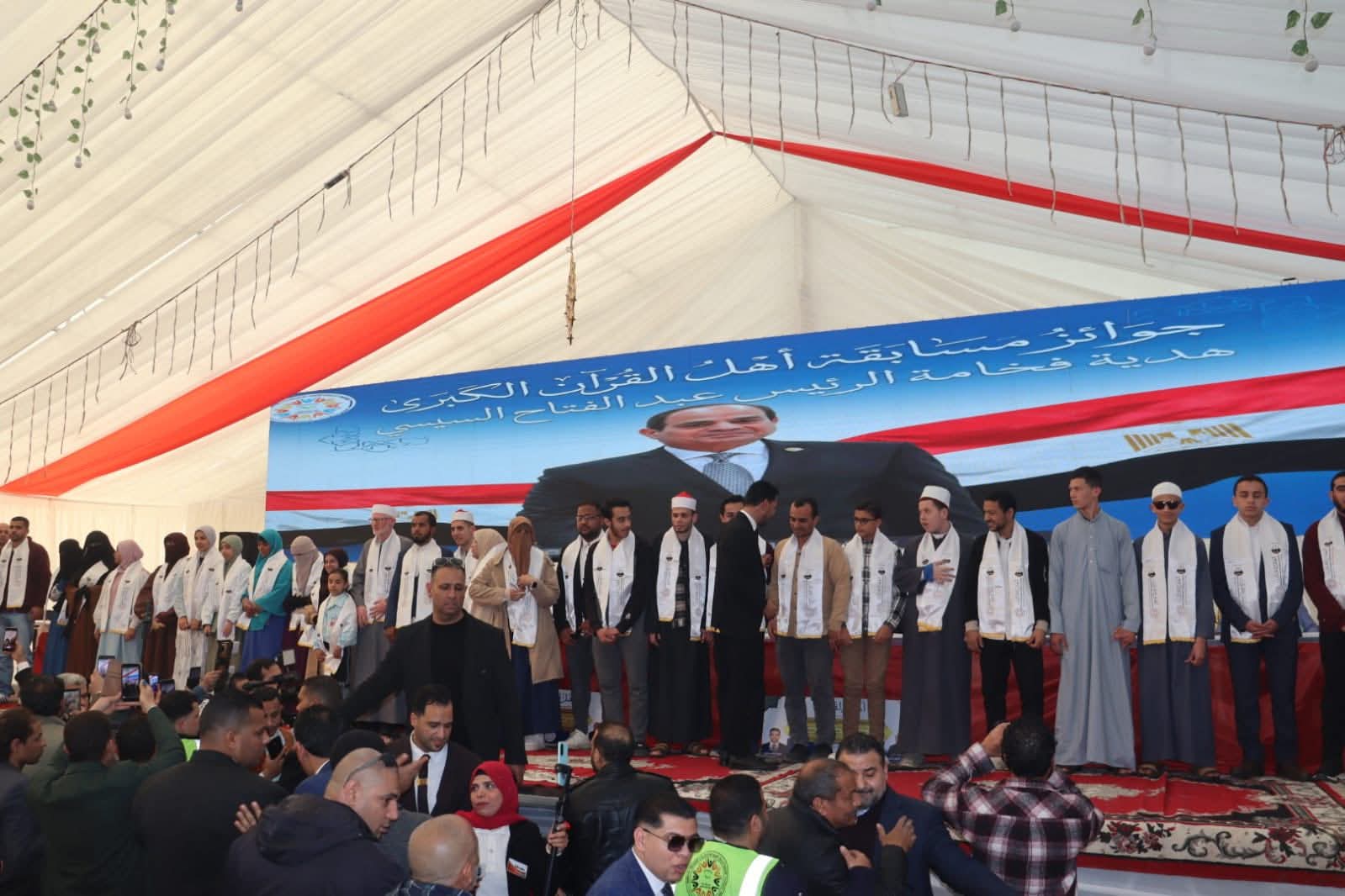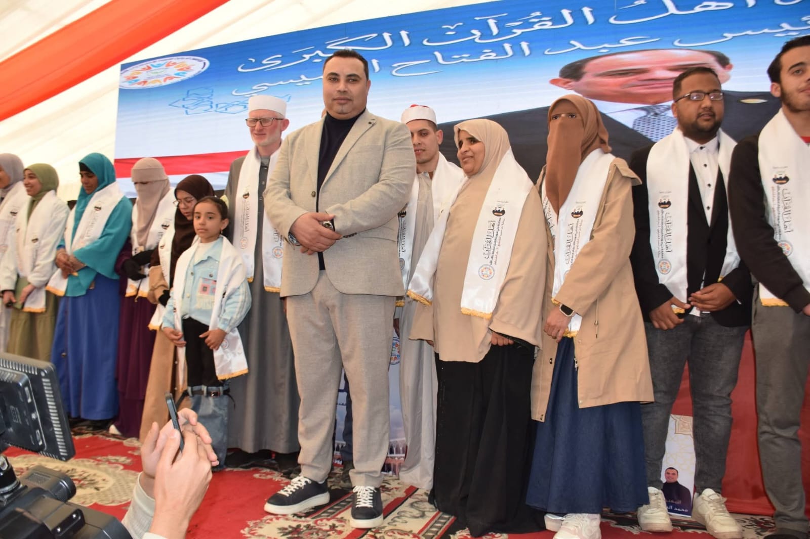 في ليلة تاريخية تلاقت فيها الأرض بالسماء في مشهد مهيب حيث تعطر الأثير بآيات الذكر الحكيم .. وصارت الوجوه بنور القرآن مستبشرة .. احتشد الآلاف في تظاهرة إيمانية لم تكن مجرد حفل بل كانت عرسا سماويا كرم فيه م. محمد الشنراوى رئيس مجلس أمناء المؤسسة الدولية للتنمية الاقتصادية والاجتماعية صفوة الخلق وأهل الله وخاصته من حفظة كتابه الكريم.