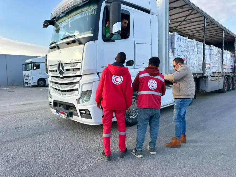 الهلال الأحمر المصري يعزز مد غزة بمزيد من المستلزمات الإغاثية والشتوية عبر قافلة «زاد العزة» 156