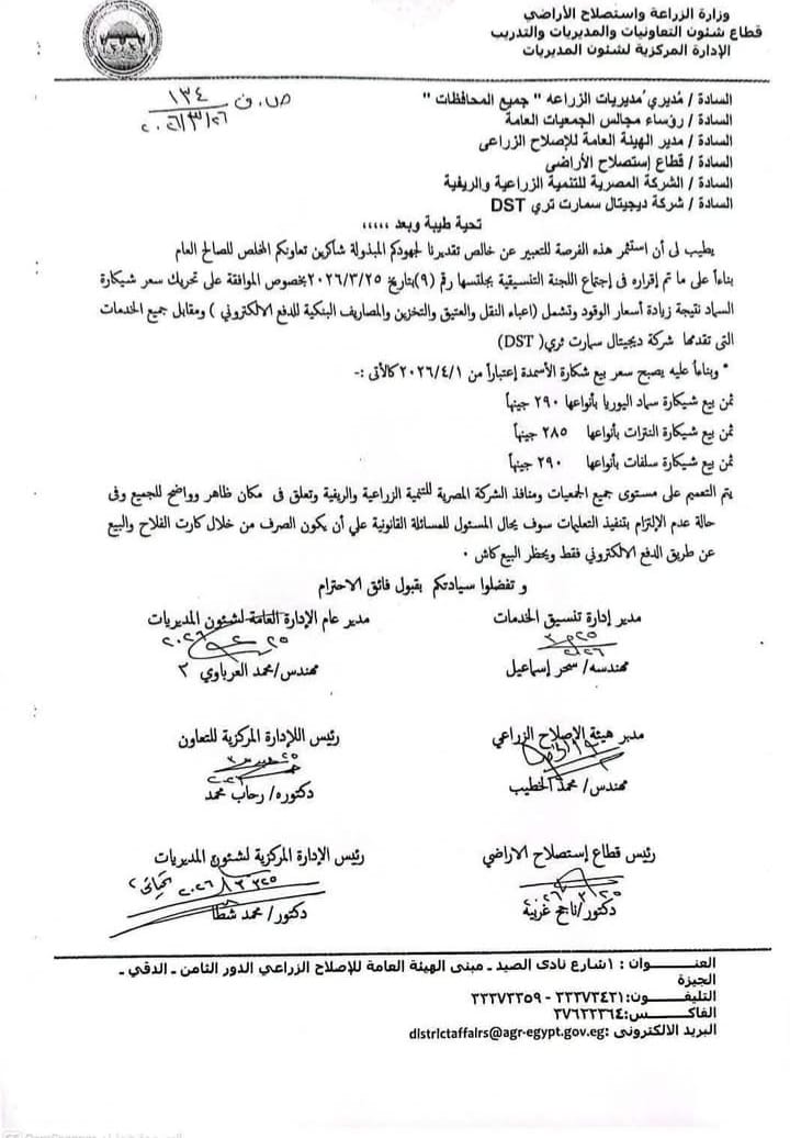توابع الحرب الإيرانية .. ”الزراعة” تعلن رفع أسعار الأسمدة بالجمعيات الزراعية