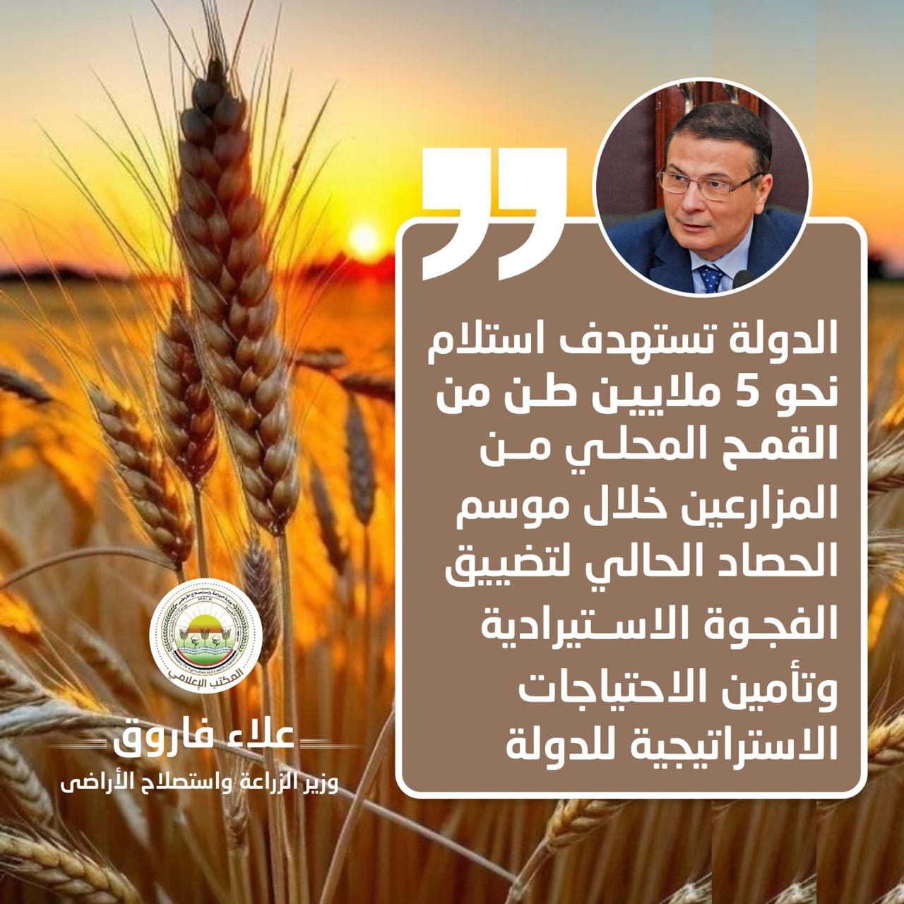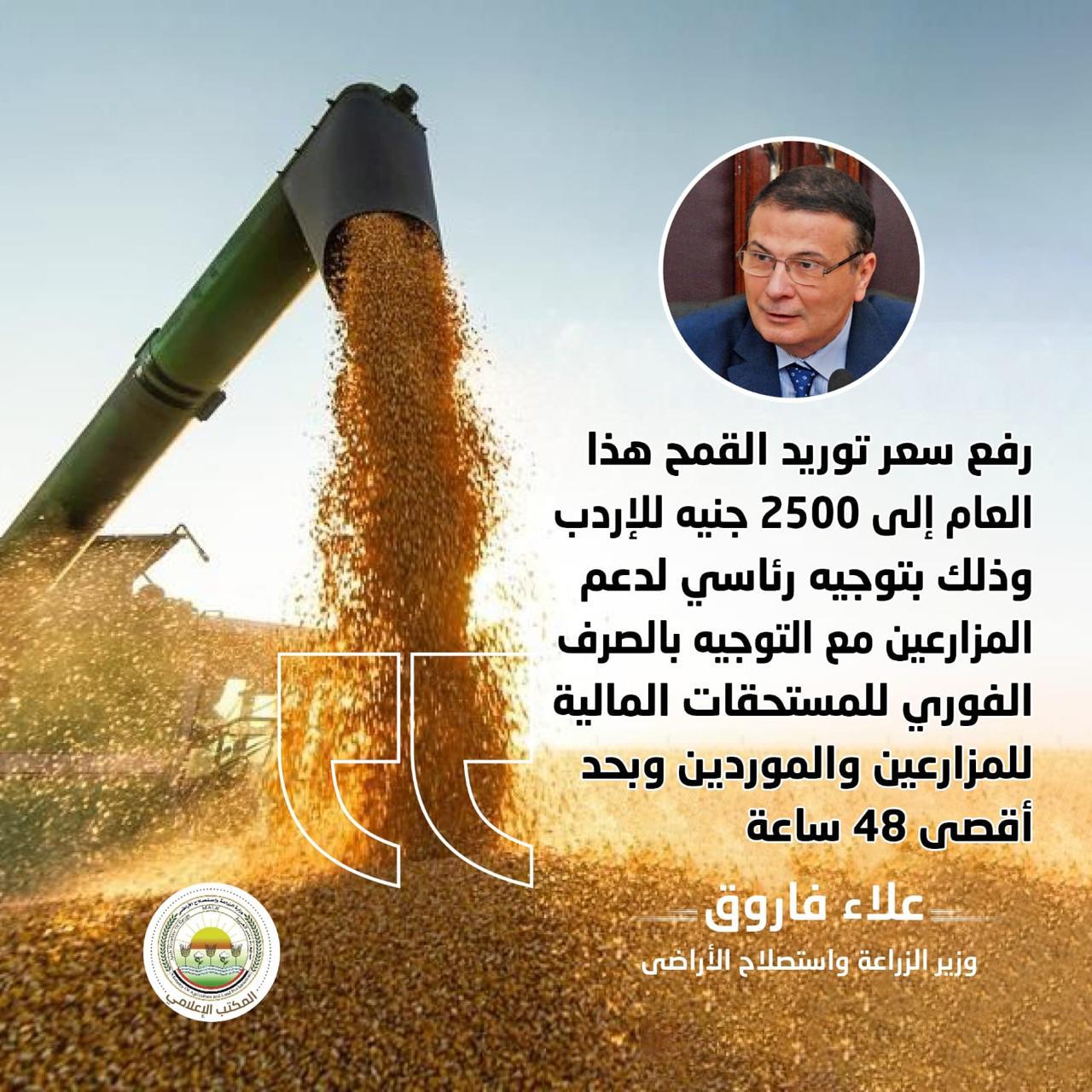 وزير الزراعة يعلن الاستعدادات النهائية لحصاد القمح: 2500 جنيه للإردب وصرف المستحقات خلال 48 ساعة بحد أقصى.