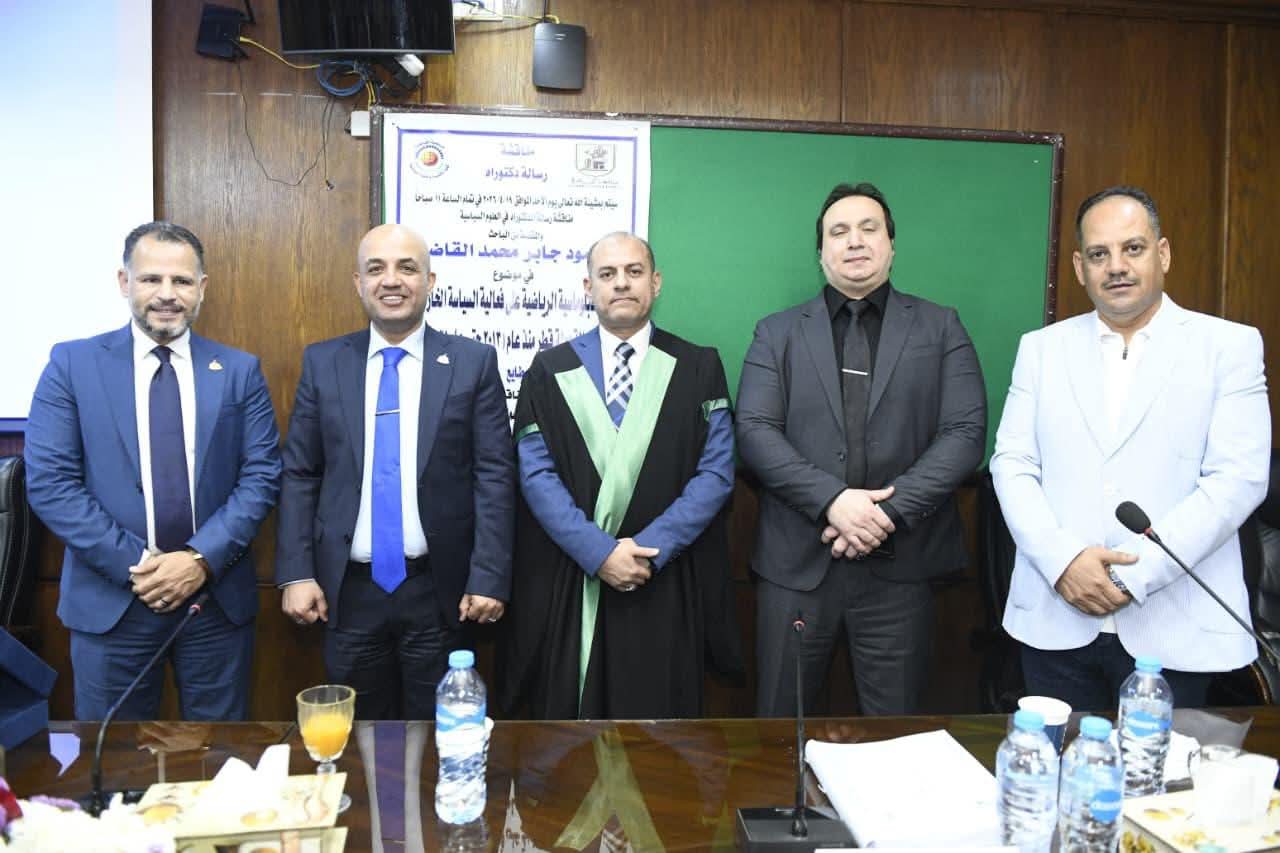 يتقدم العقيد أيمن صلاح والنائب إسماعيل موسي والنائب محمد فاروق والمستشار محمد داوود (مكتب وزير العدل) بأجمل التهاني وأطيب التمنيات بدوام التقدم والتوفيق والنجاح الدائم للعميد أ.ح دكتور محمود القاضي بمناسبة حصوله على درجة الدكتوراة من كلية الاقتصاد والعلوم السياسية بجامعة القاهرة بتقدير "امتياز" عن رسالته العلمية المتميزة: "تأثير الدبلوماسية الرياضية على فعالية السياسة الخارجية – دراسة حالة دولة قطر (2013 حتى 2025)"