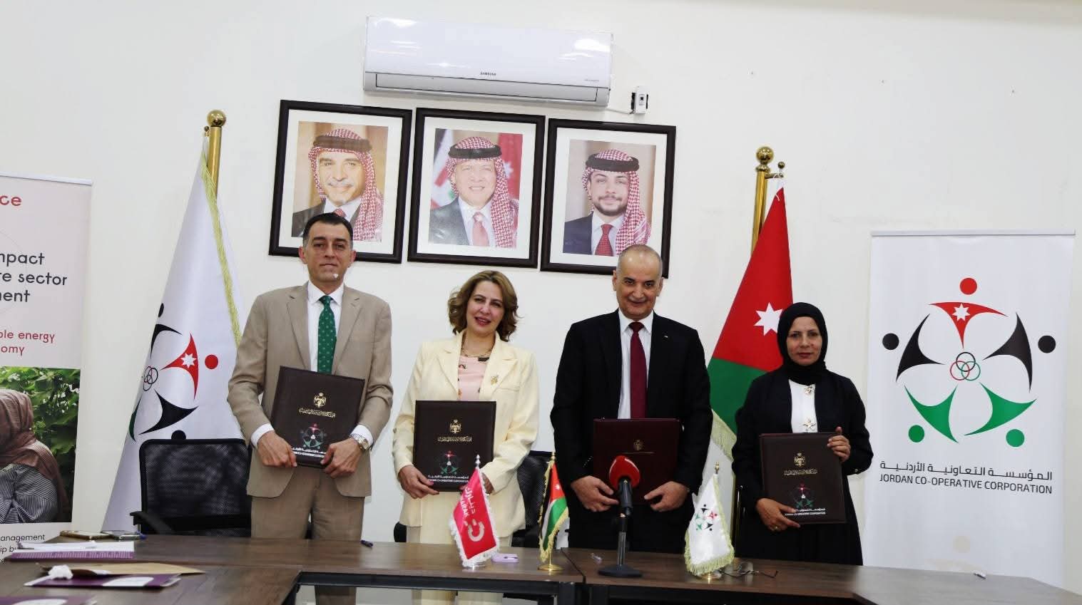 ووقع الاتفاقيات كل من عطوفة المدير العام عبدالفتاح الشلبي، والمدير الإقليمي لشركة فال م. لمياء الدباس، والرئيس التنفيذي لشركة(دينارك) م.عماد آل عيون، ورؤساء التعاونيات الأربع، وهم م. عاهد عبيدات، والأستاذ رائد الصعايدة، والسيدة صباح سالم، والسيدة عبلة بني مفرج.